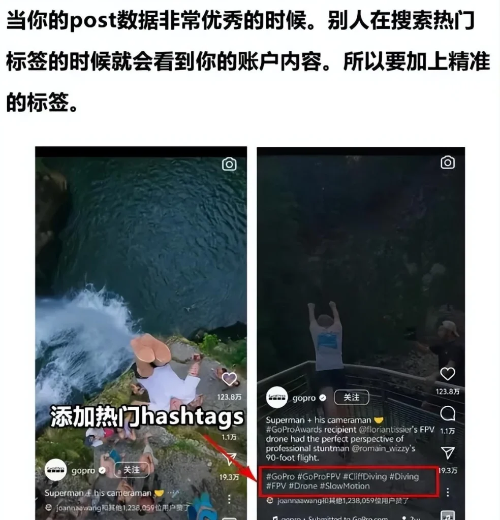 当你的post数据非常优秀的时候。别人在搜索热门标签的时候就会看到你的账户内容。所以要加上精准的标签。