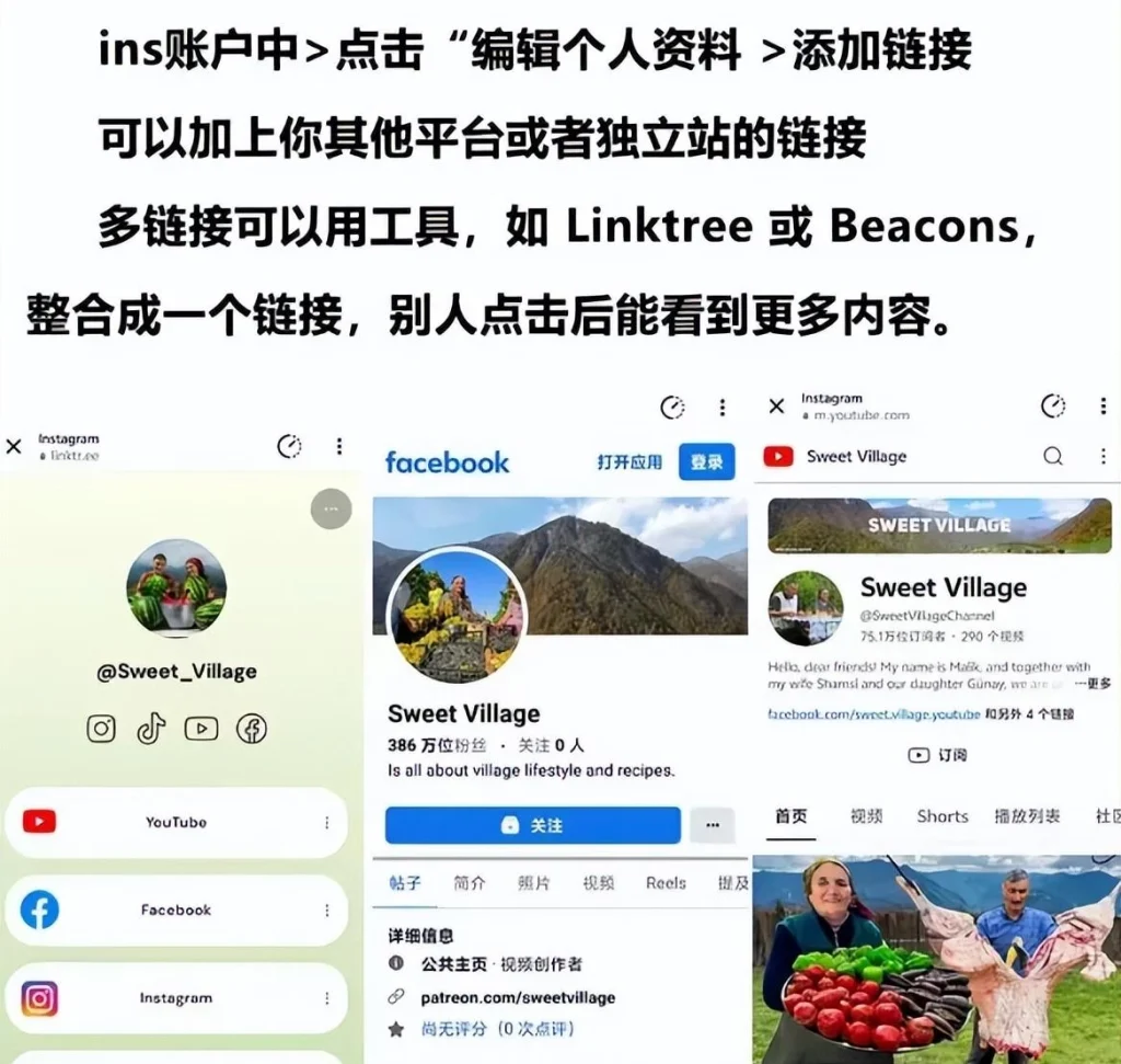 ins账户中>点击“编辑个人资料>添加链接,可以加上你其他平台或者独立站的链接,多链接可以用工具,如Linktree或Beacons,整合成一个链接,别人点击后能看到更多内容。