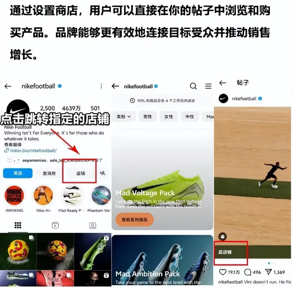 这个方法基本上大部分的社媒平台都是有的,Instagram小店这个是Instagram的商业的功能,然后我们通过设置商店,用户可以直接在你的帖子中浏览和购买产品。品牌能够更有效地连接目标受众并推动销售增长。