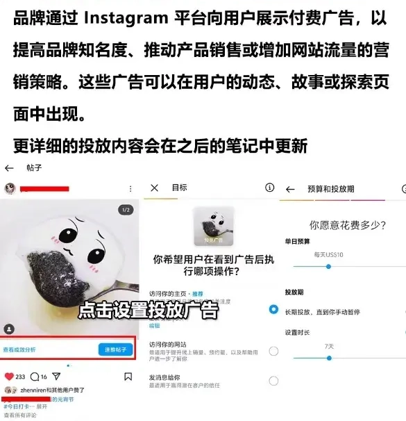 商业广告这个基本上也是所有社媒平台都会有的,Instagram引流自然也不例外。我们通过 Instagram平台向用户展示付费广告,以提高品牌知名度、推动产品销售或增加网站流量的营销策略。这些广告可以在用户的动态、故事或探索页面中出现。有实力的朋友这个了解清楚了的话,也可以用一下,也是不错的方式,当然最好评估一下自己的产品适不适合投。